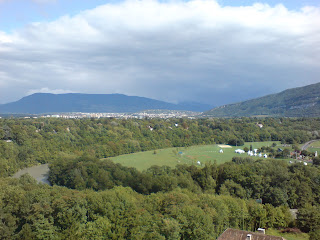 I arrived in Geneva yesterday at about 3 p.m. When I opened the curtains in my 13th floor room, I had a great view on the mountainside. Apart from that, the room is very old, but it will do the job. Same goes for kitchen and "bathroom", I will post some pics soon.
